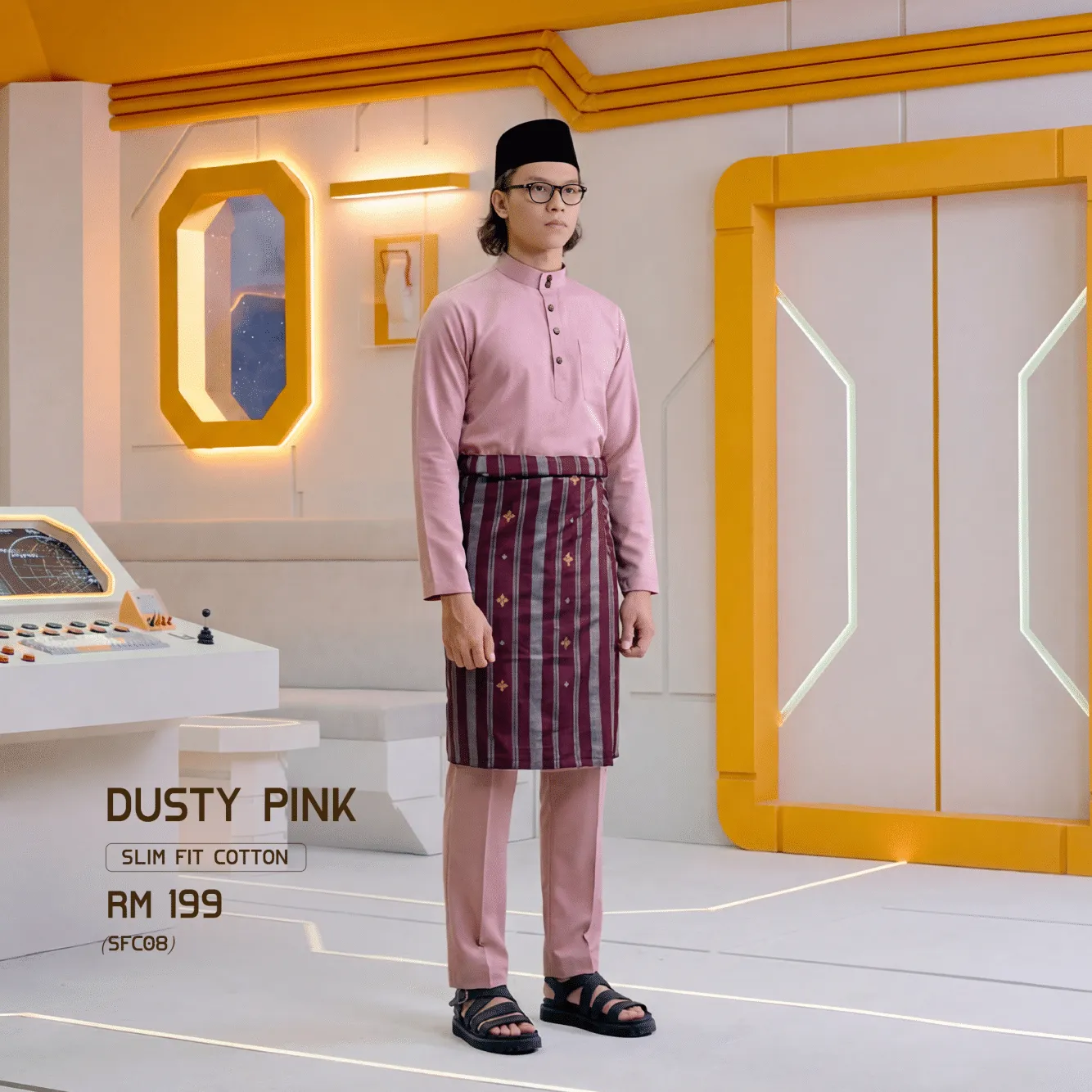 Baju Melayu Slim Fit ( Cotton ) – Dusty Pink