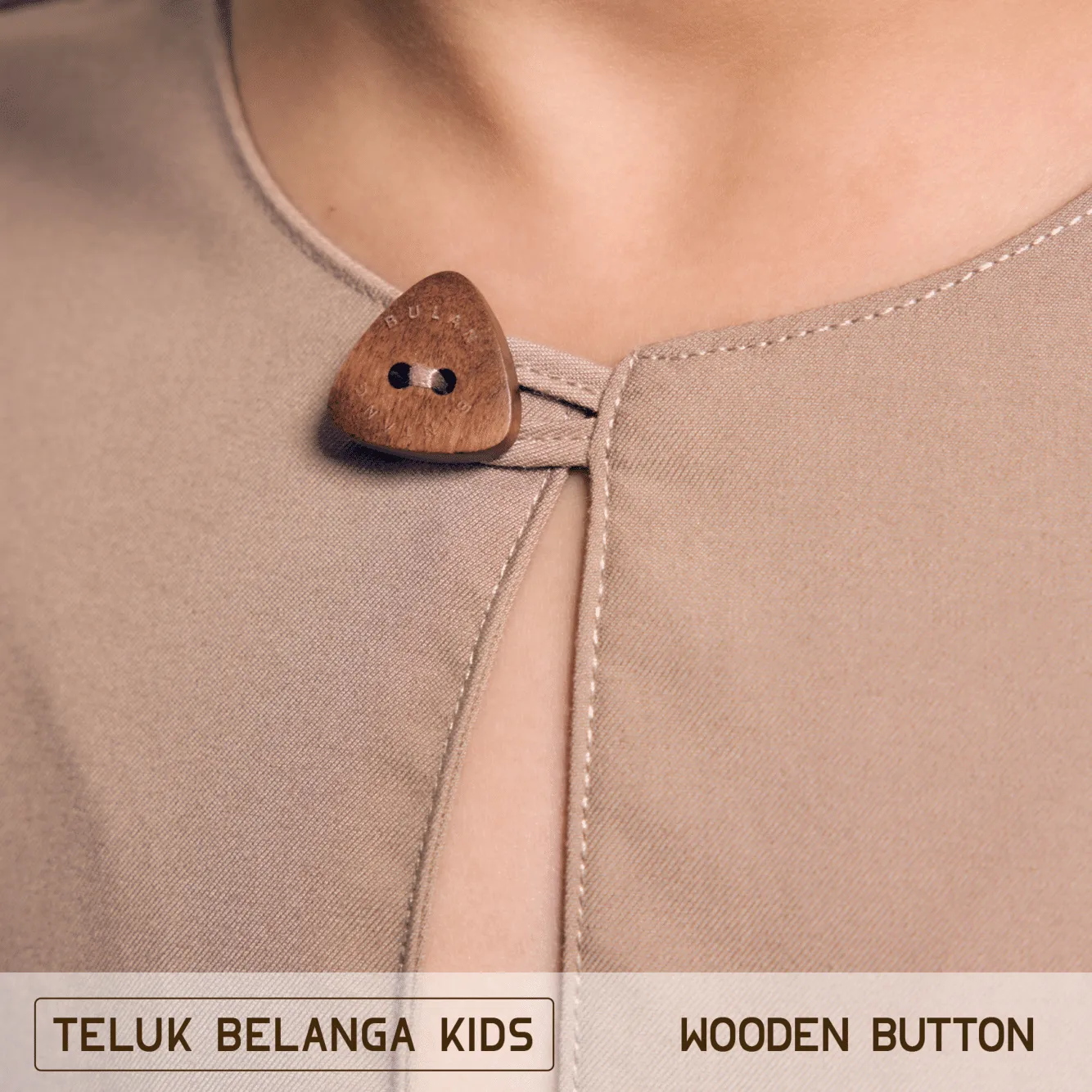 Teluk Belanga collar with custom button detailing, no logo on shirt.