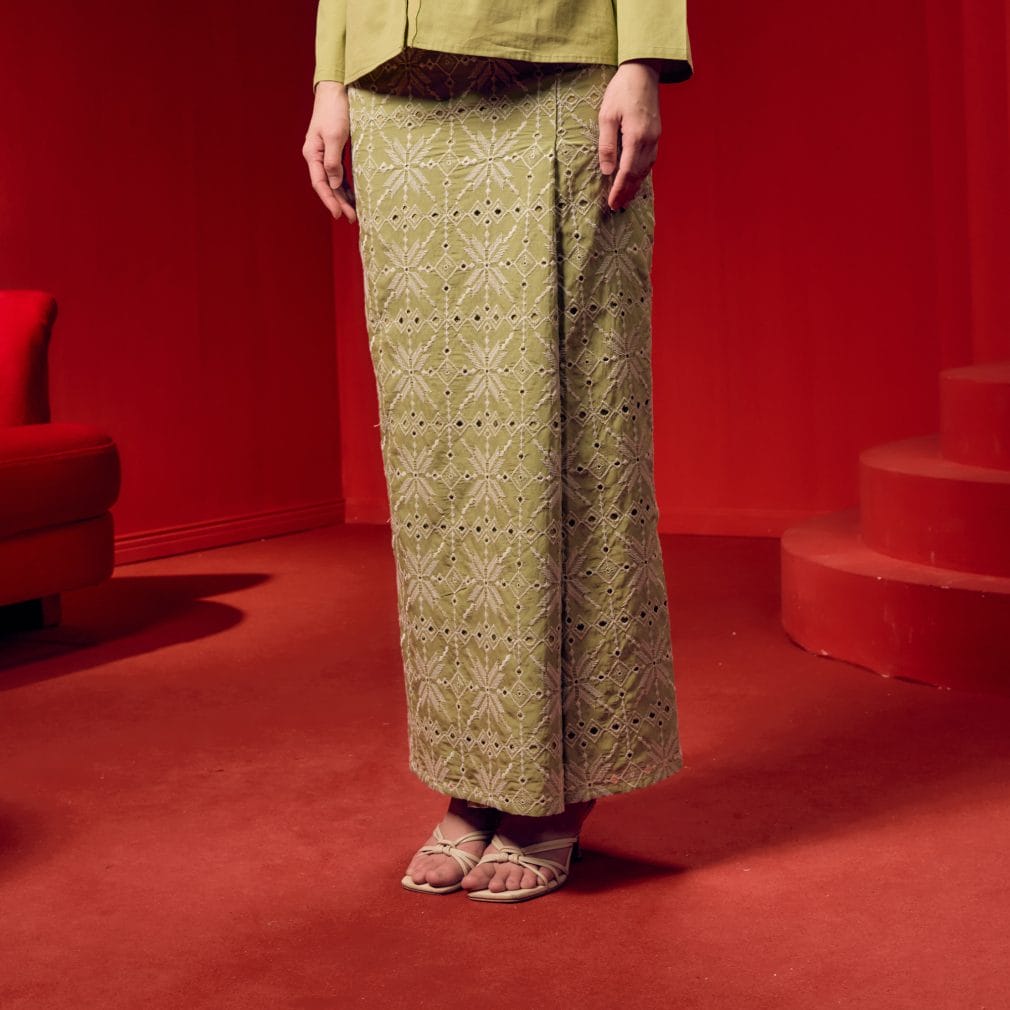 Front slit skirt.