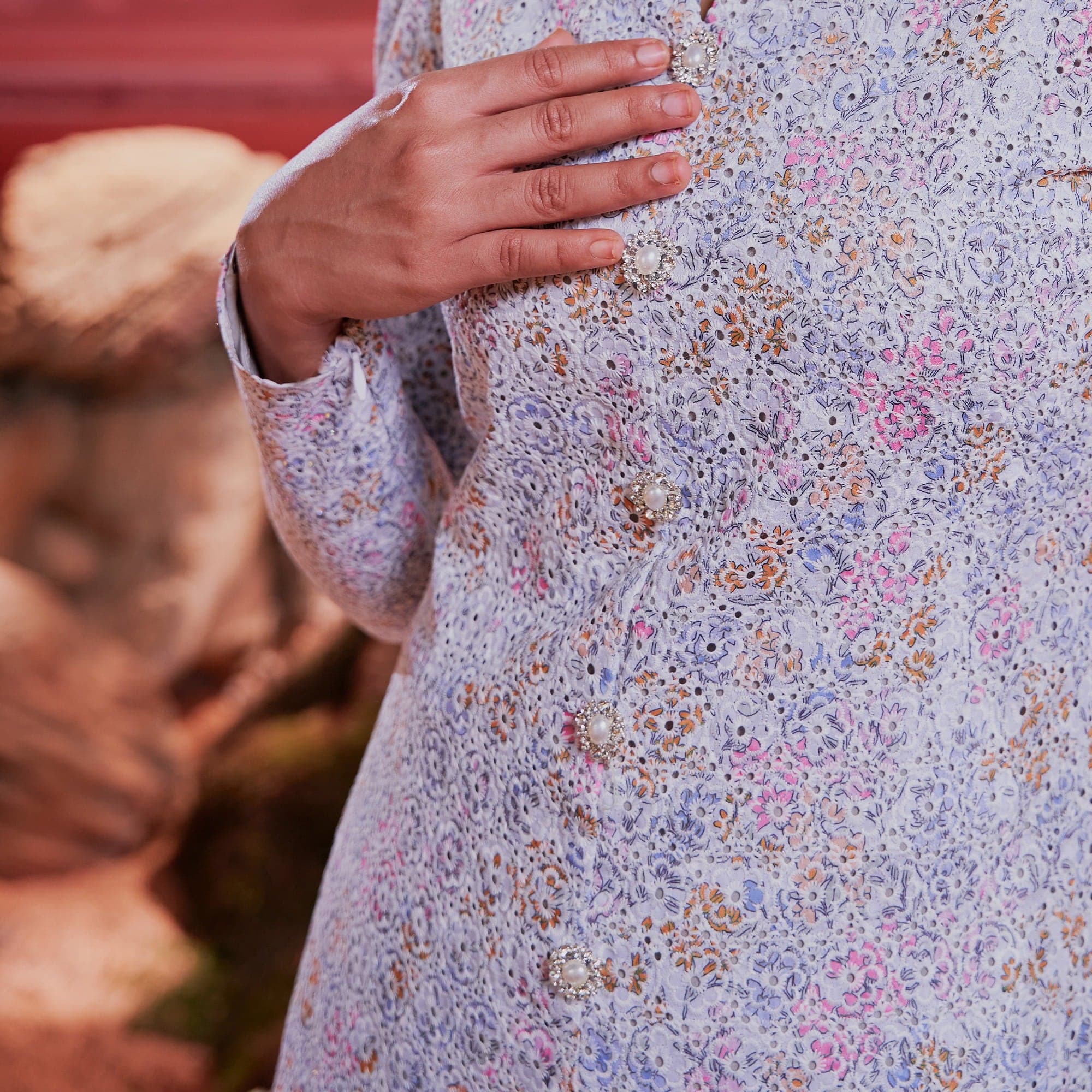 Diamond Dummy Button: Adorned with opulence, each diamond dummy button becomes a focal point, an intricate detail that elevates the ensemble to a regal masterpiece.