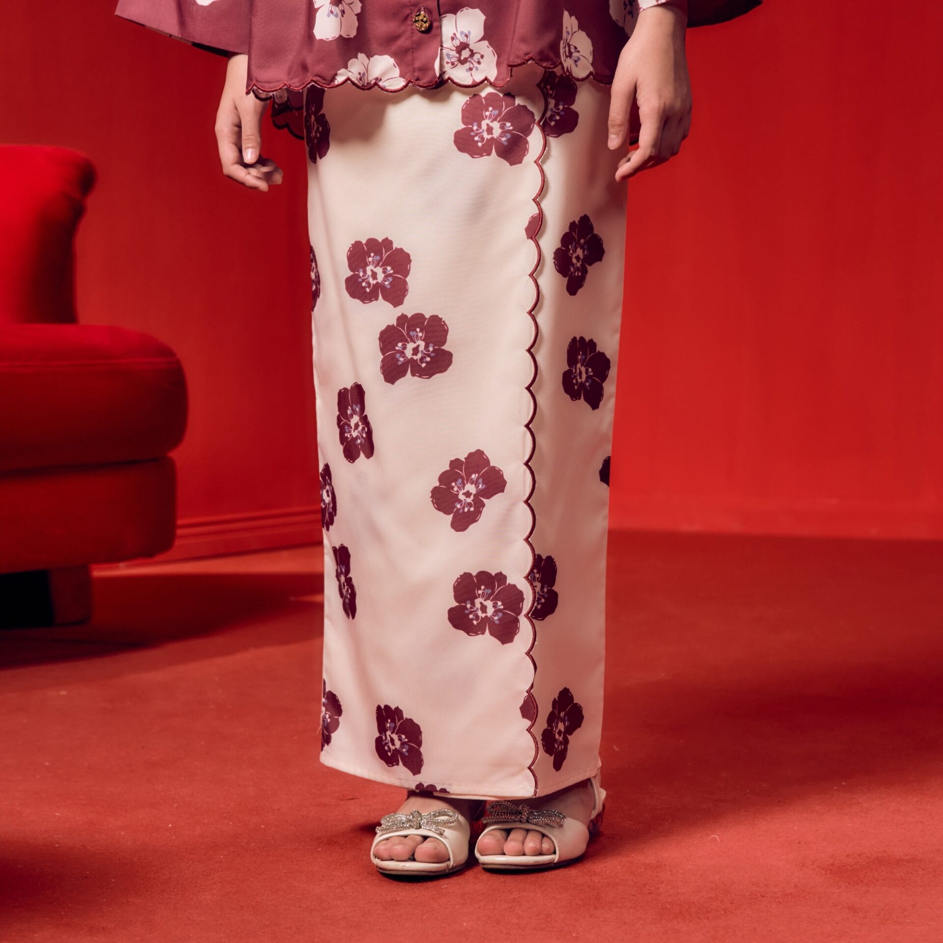 Neck with pleated detailing.