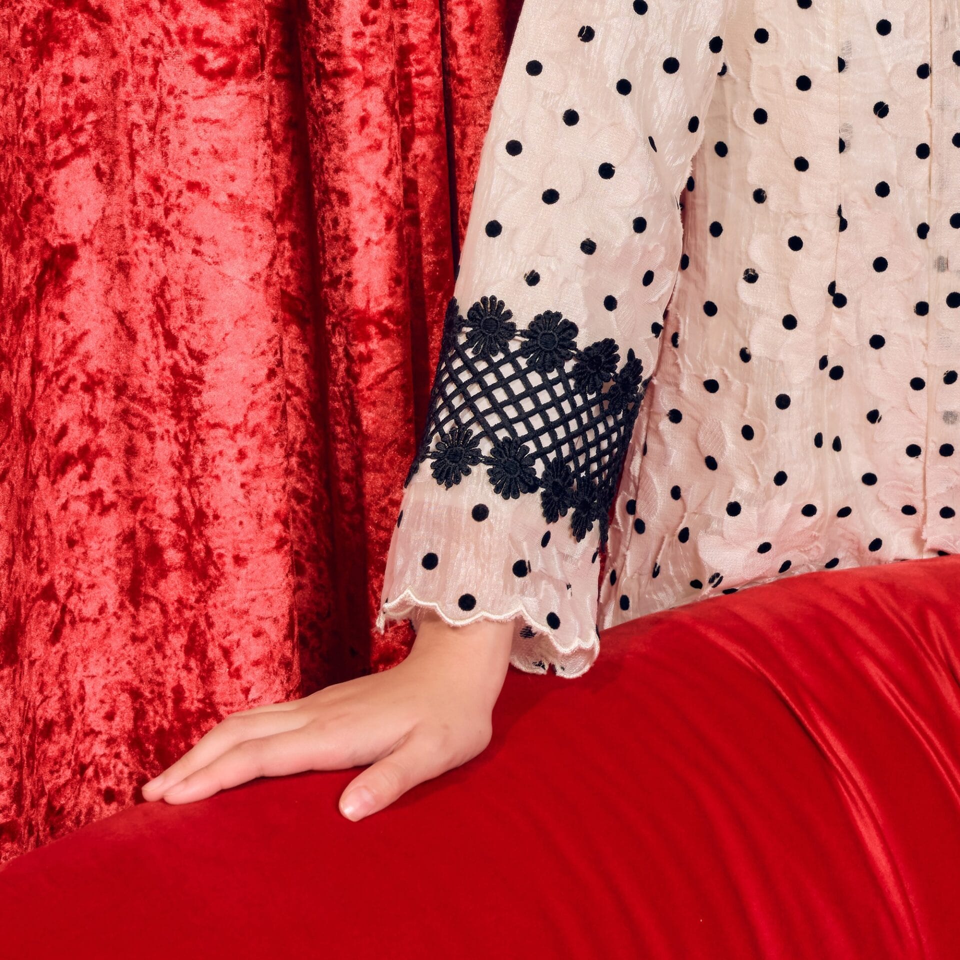 Fabric: Polkadot textured fabric, creating a fun and charming design.