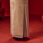 Design: Classic box pleated skirt for a structured, elegant silhouette.