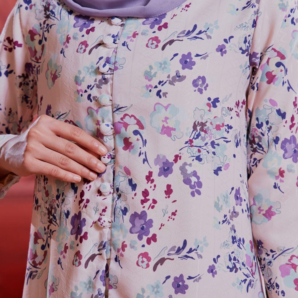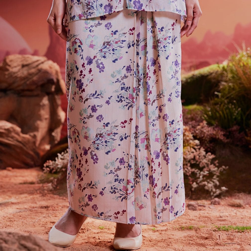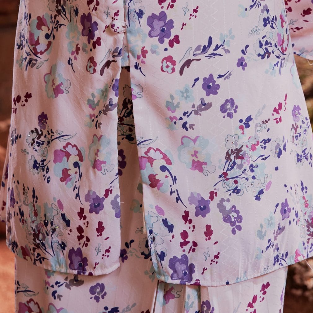 This Baju from Bulan Bintang Sisters combines traditional elements with modern details, offering a unique and stylish ensemble. The V-neckline, hot fix embellishments, front opening with mushroom button, front pleat skirt, and side zipper contribute to a fashionable and versatile outfit suitable for various occasions.