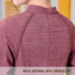 Seamless Closure: Fitted with an invisible zip at the back for a polished look.