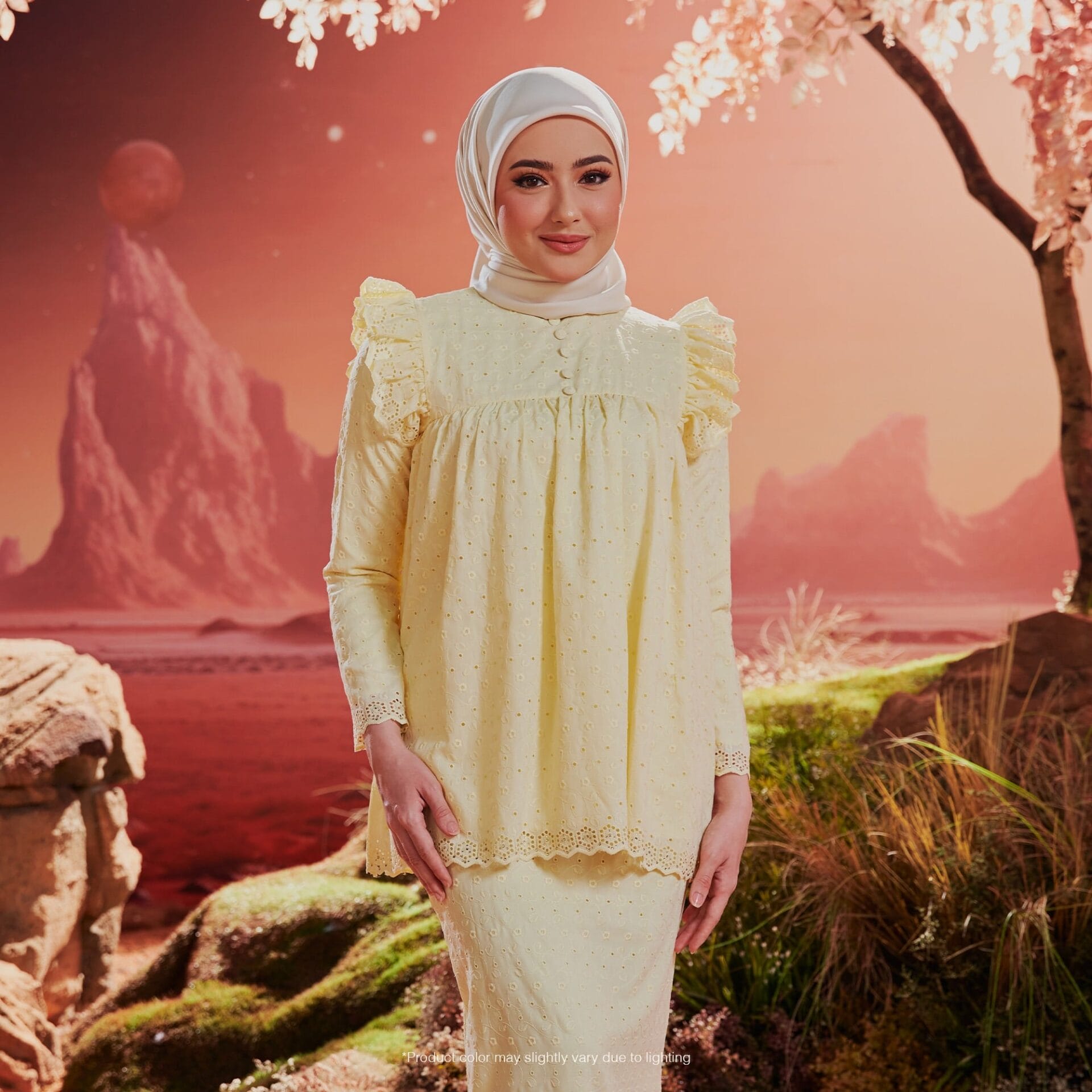 Box Pleat: The skirt of the Baju Kurung features box pleats, providing structure and a traditional touch to the overall look.