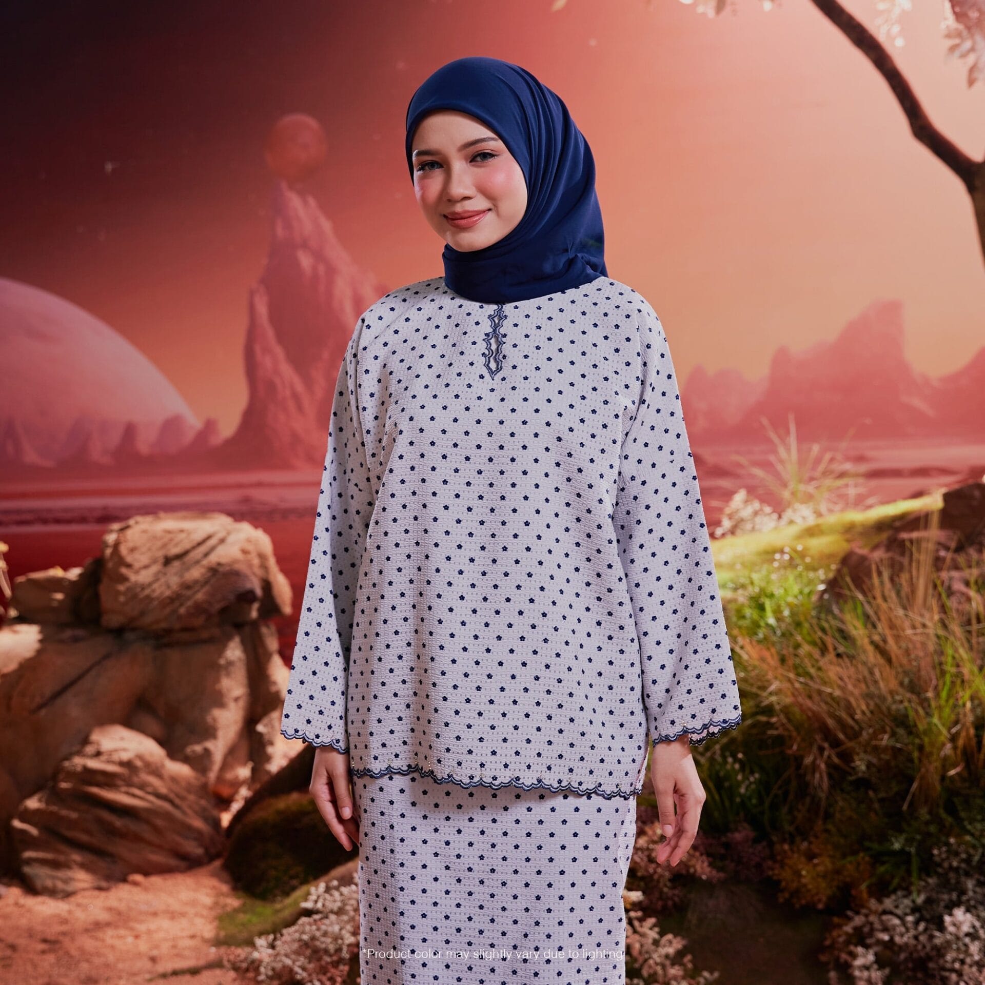 The term of “Kurung Kedah” typically refers to a traditional Malay attire, and “cutting box” could imply a modern twist in its design, often associated with a boxy or structured silhouette. Here’s a description based on the Kurung Kedah with a box-cutting: