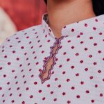 Printed Cotton: The top is crafted from printed cotton fabric, adding a playful and trendy element to the ensemble. The combination of embroidery and printed cotton creates a stylish contrast and visual interest.