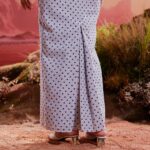 Mermaid Skirt: The skirt is tailored in a mermaid style, gracefully flaring out towards the bottom. The mermaid skirt design is characterized by a fitted silhouette around the hips and thighs, with a dramatic flare starting around the knees or lower, resembling the shape of a mermaid’s tail.
