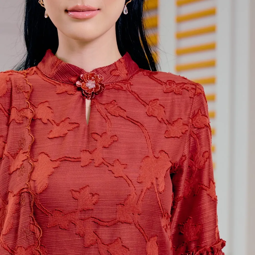 Ruffle Sleeve: Detailed with stylish ruffles at the sleeves for a feminine and modern touch.