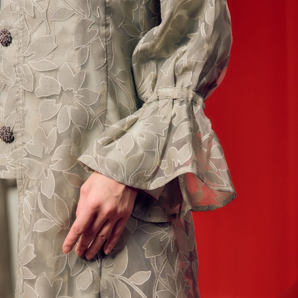 Poet sleeves that add a soft, dramatic flair to the overall look.