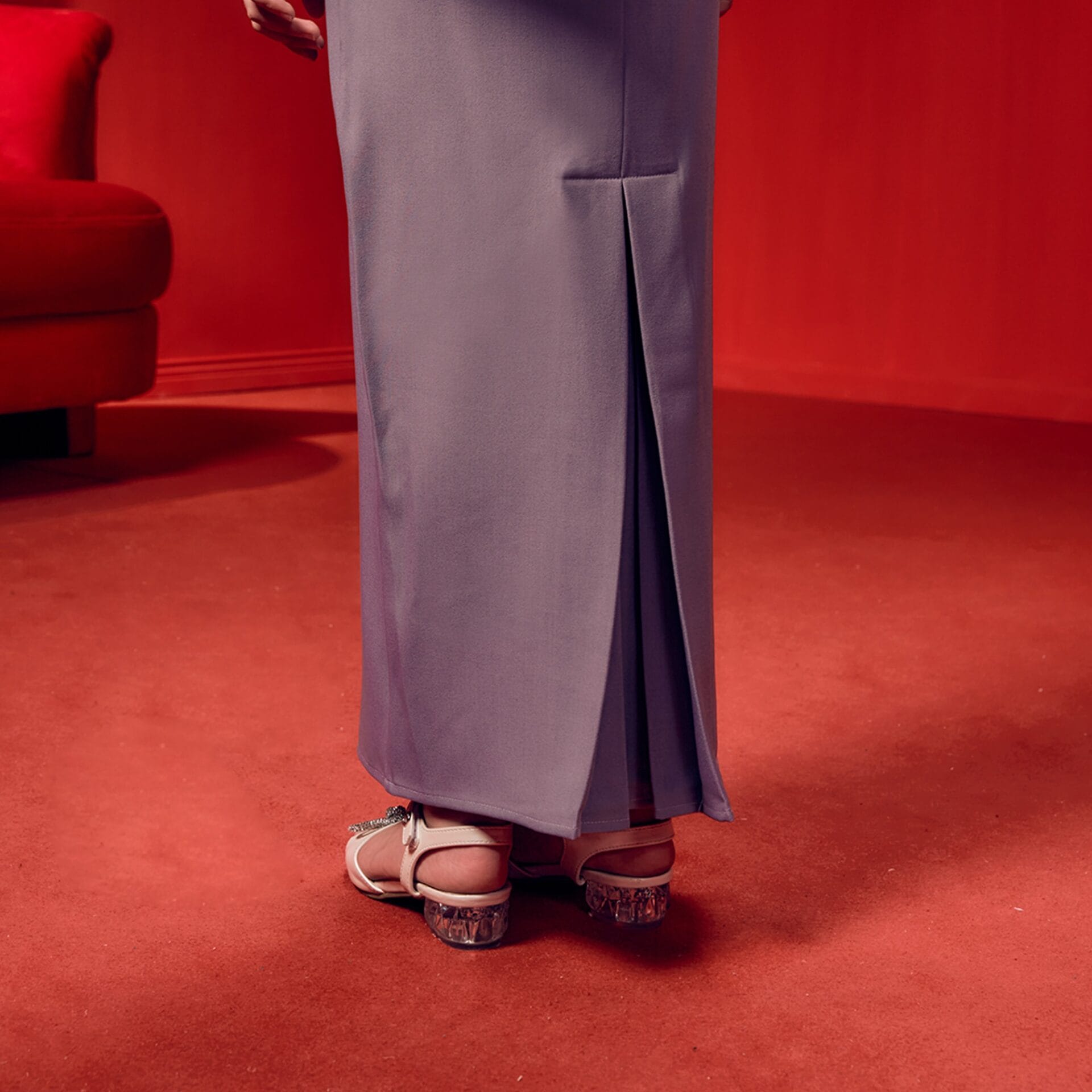 Design: Timeless box pleated skirt for a stylish and easy-to-move-in look.