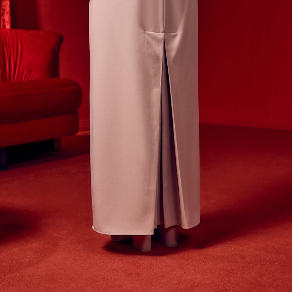 Back: Invisible zip at the back for a smooth, polished finish.