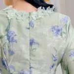 Trimming Flower at Neckline: Elegantly detailed with floral trimming along the neckline for a delicate and feminine accent.